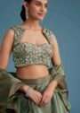The soft olive tone lends a sophisticated charm, while the sheer drape completes the look with effortless grace. Lightweight yet visually striking, this ensemble is ideal for evening functions where style meets comfort.